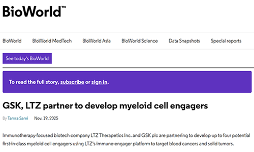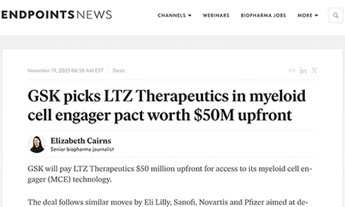 GSK plc (LSE/NYSE: GSK) and LTZ Therapeutics (LTZ), an immunotherapy-focused biotechnology company based in Redwood City, California, today announced a strategic research collaboration to advance the development of novel myeloid cell engagers (MCEs) to address significant unmet need in oncology.